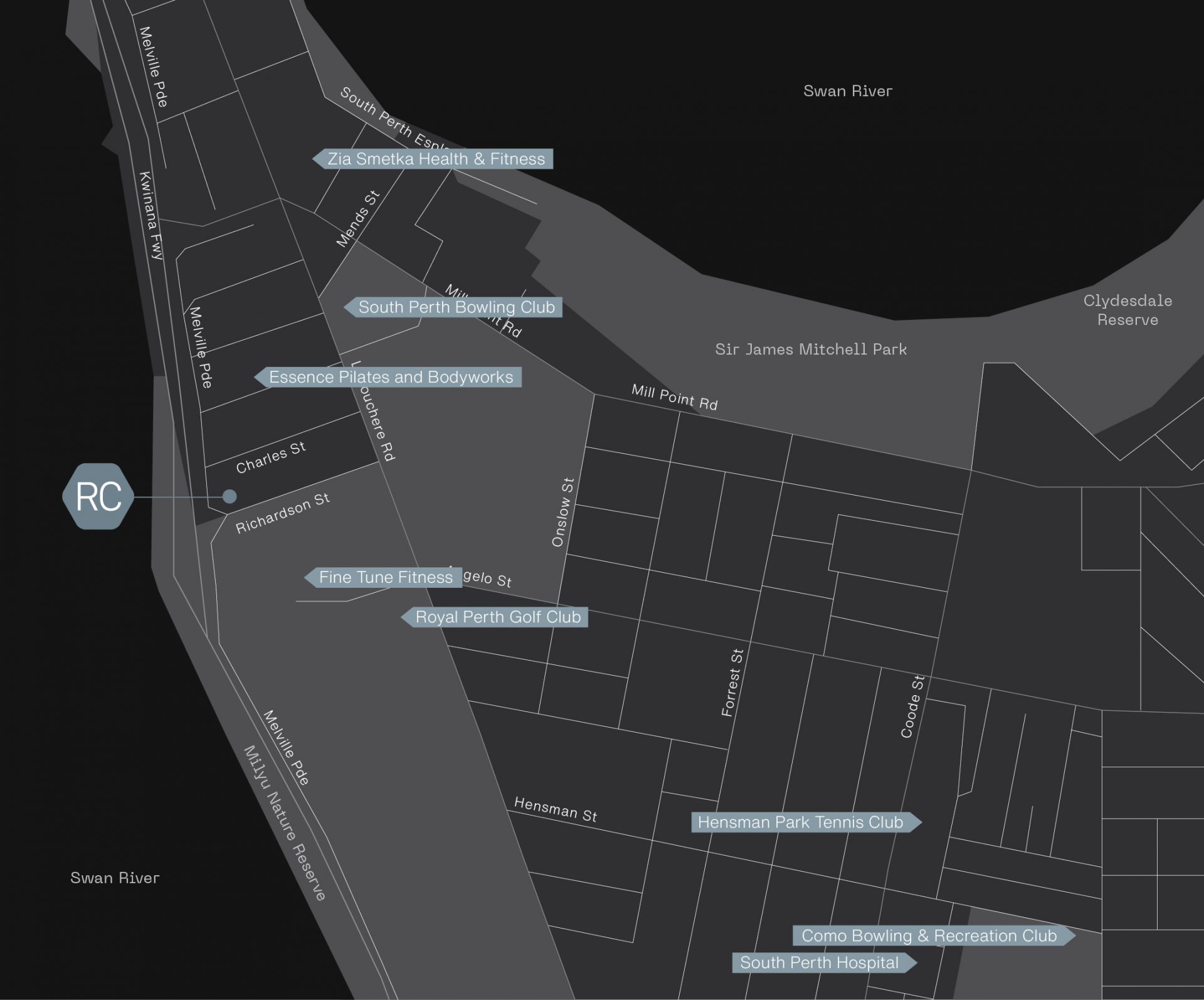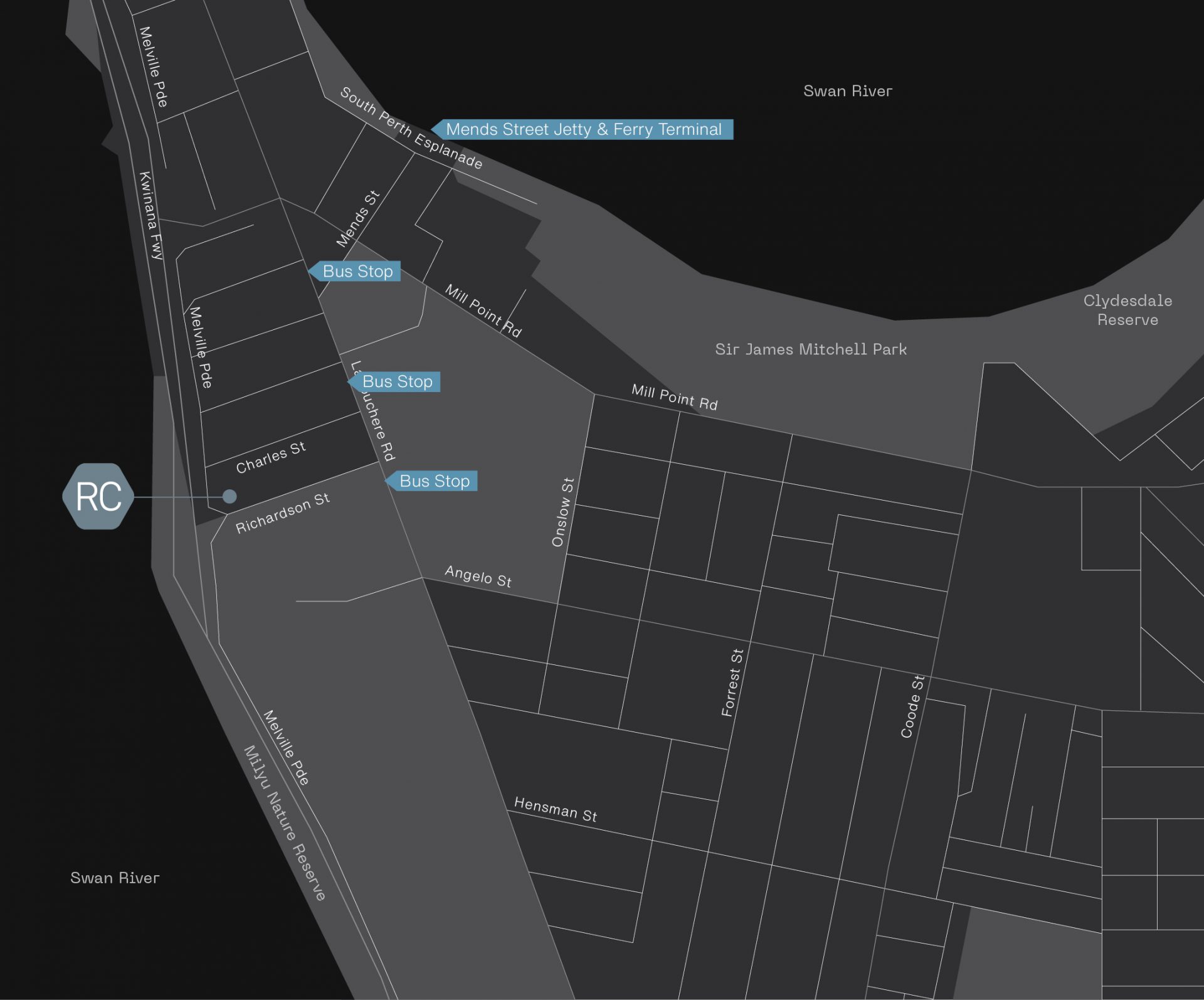 As well as close connections to recreational facilities such as Royal Perth Golf Club, South Perth Tennis Centre, and Collier Park Golf Course, Richardson Centre also boasts strong transport links. These include easy freeway access, a nearby ferry stop, plus close proximity to bus stops and Perth’s main cycle path infrastructure.